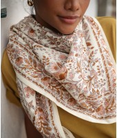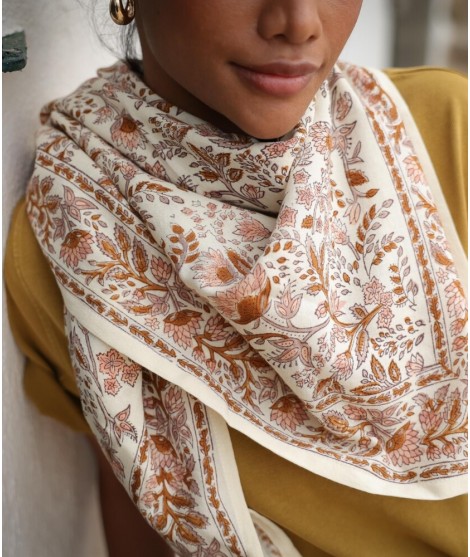 Vous découvrirez une belle sélection de foulards en coton fabriqués artisanalement à partir de la technique indienne du blockprint.