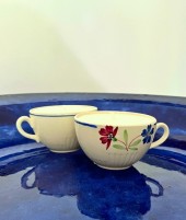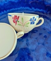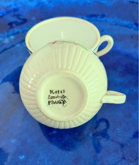 Deux jolies bougies artisanales coulées dans des tasses à café vintage de la manufacture Lunéville.